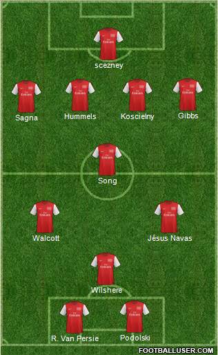 R. Van Persie · Podolski · Wilshere · Walcott · Jésus Navas · Song · Sagna · Hummels · Koscielny · Gibbs · scezney