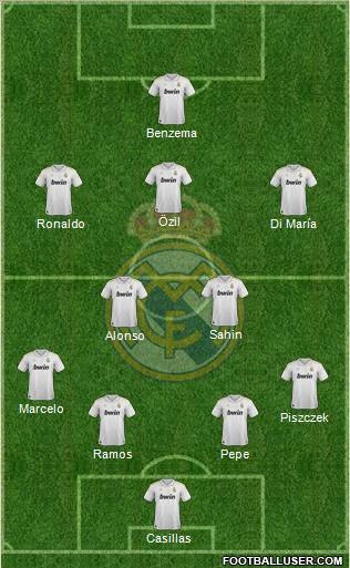 Casillas · Ramos · Pepe · Piszczek · Marcelo · Alonso · Sahin · Ronaldo · Di María · Özil · Benzema