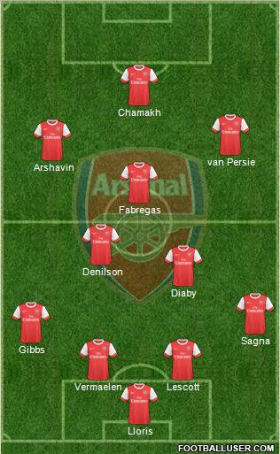 Lloris · Vermaelen · Lescott · Gibbs · Sagna · Diaby · Denilson · Fabregas · Arshavin · van Persie · Chamakh
