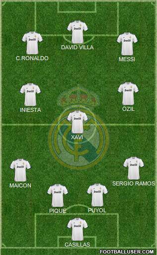CASILLAS · PIQUE · PUYOL · MAICON · SERGIO RAMOS · XAVI · INIESTA · ÖZIL · MESSI · C.RONALDO · DAVID VILLA