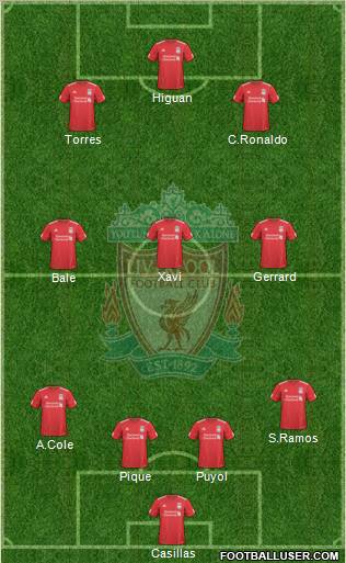 Casillas · Pique · Puyol · A.Cole · S.Ramos · Bale · Xavi · Gerrard · Torres · C.Ronaldo · Higuan