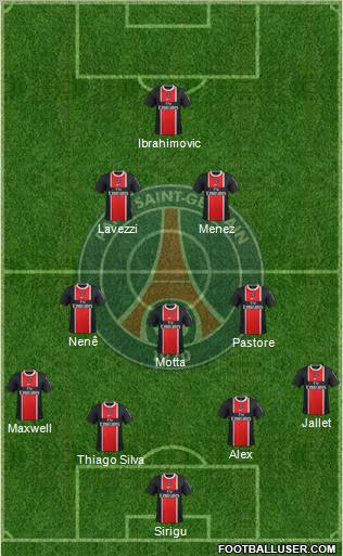 Sirigu · Thiago Silva · Alex · Maxwell · Jallet · Motta · Pastore · Nenê · Lavezzi · Menez · Ibrahimovic