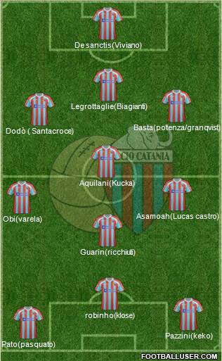 Pato(pasquato) · Pazzini(keko) · robinho(klose) · Guarin(ricchiuti) · Obi(varela) · Asamoah(Lucas castro) · Aquilani(Kucka) · Dodò ( Santacroce) · Basta(potenza/granqvist) · Legrottaglie(Biagianti) · De sanctis(Viviano)