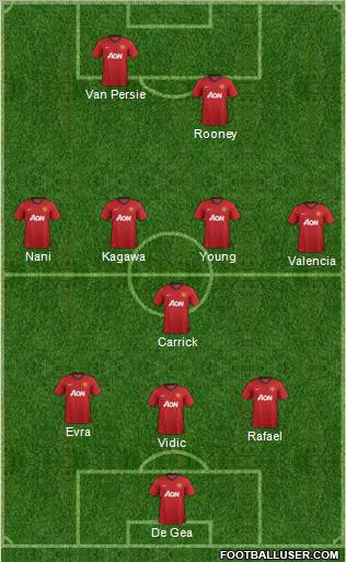 De Gea · Vidic · Rafael · Evra · Carrick · Valencia · Nani · Kagawa · Young · Rooney · Van Persie