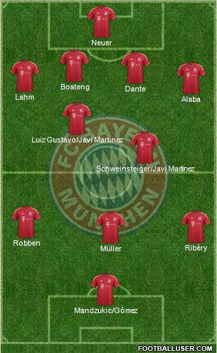 Neuer · Boateng · Dante · Lahm · Alaba · Luiz Gustavo/Javi Martinez · Schweinsteiger/Javi Martinez · Robben · Ribéry · Müller · Mandzukic/Gómez