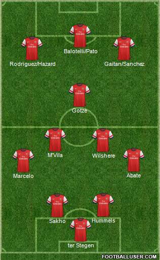 ter Stegen · Sakho · Hummels · Marcelo · Abate · Wilshere · M'Vila · Gotze · Rodriguez/Hazard · Gaitan/Sanchez · Balotelli/Pato