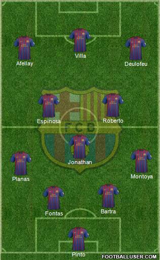 Pinto · Fontas · Bartra · Planas · Montoya · Jonathan · Espinosa · Roberto · Deulofeu · Afellay · Villa
