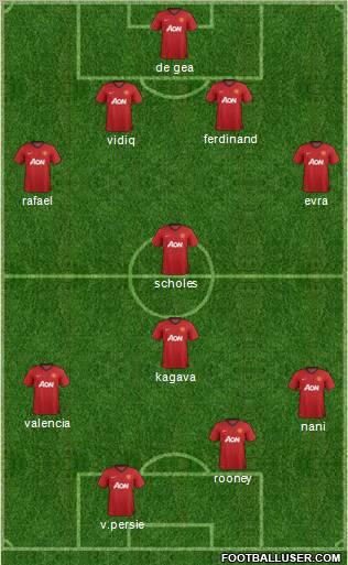v.persie · rooney · nani · valencia · kagava · scholes · rafael · evra · vidiq · ferdinand · de gea