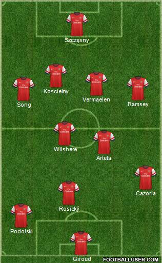 Giroud · Podolski · Rosický · Cazorla · Arteta · Wilshere · Song · Ramsey · Vermaelen · Koscielny · Szczęsny