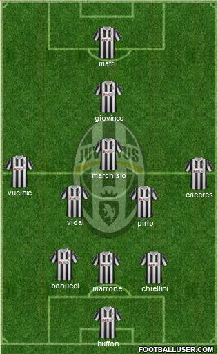 buffon · marrone · chiellini · bonucci · pirlo · vidal · caceres · vucinic · marchisio · giovinco · matri