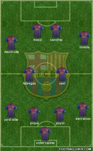 victor valdes · pique · puyol · jordi alba · dani alves · fabregas · xavi · david villa · iniesta · messi · sanchez