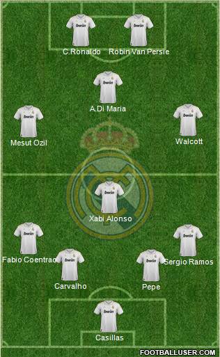 Casillas · Pepe · Carvalho · Sergio Ramos · Fabio Coentrao · Xabi Alonso · Mesut Ozil · Walcott · A.Di Maria · C.Ronaldo · Robin Van Persie