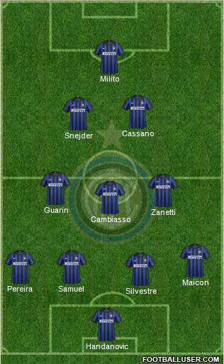 Handanovic · Silvestre · Pereira · Samuel · Maicon · Cambiasso · Zanetti · Guarin · Snejder · Cassano · Milito