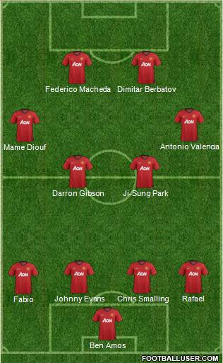 Ben Amos · Fabio · Johnny Evans · Chris Smalling · Rafael · Darron Gibson · Ji-Sung Park · Mame Diouf · Antonio Valencia · Federico Macheda · Dimitar BerbatovLeague Cup - quarter-finals - 30.11.2011