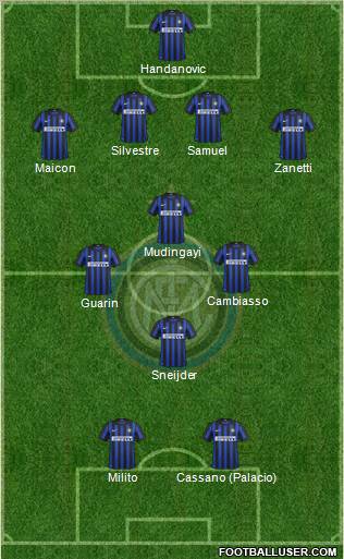 Milito · Cassano (Palacio) · Sneijder · Guarin · Cambiasso · Mudingayi · Maicon · Zanetti · Silvestre · Samuel · Handanovic
