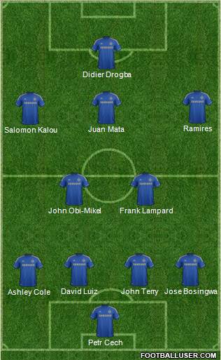 Petr Cech · Ashley Cole · David Luiz · John Terry · Jose Bosingwa · John Obi-Mikel · Frank Lampard · Salomon Kalou · Juan Mata · Ramires · Didier DrogbaFA-Cup - semi-finals - 15.04.2012