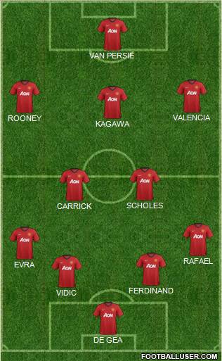 DE GEA · VIDIC · FERDINAND · EVRA · RAFAEL · CARRICK · SCHOLES · KAGAWA · ROONEY · VALENCIA · VAN PERSIE