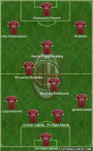 christian abbiati · Cristian Zapata · Philippe Mexès · Luca Antonini · ignazio abate · Massimo Ambrosini · Riccardo Montolivo · Kevin-Prince Boateng · Urby Emanuelson · Robinho · Giampaolo Pazzini
