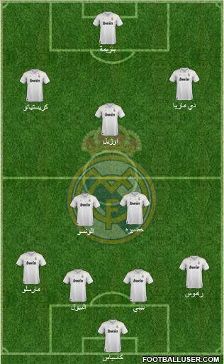 كاسياس · البيول · بيبي · راموس · مارسلو · الونسو · خضيره · اوزيل · كريستيانو · دي ماريا · بنزيمة