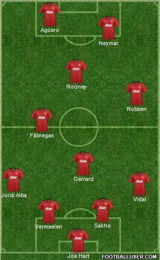 Joe Hart · Vermaelen · Sakho · Vidal · Jordi Alba · Gerrard · Fàbregas · Robben · Rooney · Neymar · Agüero