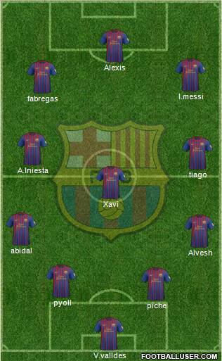 V.valldes · piche · pyoll · Alvesh · abidal · Xavi · tiago · A.Iniesta · fabregas · l.messi · Alexisformacion --- me ketë formacion do te luaj barcelona e kipi ma i forti ne bot------------------------------sa like i merr formacioni --barcelones