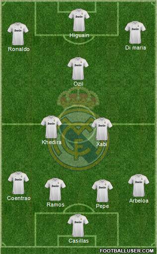 Casillas · Pepe · Ramos · Arbeloa · Coentrao · Xabi · Khedira · Ozil · Ronaldo · Di maria · Higuain