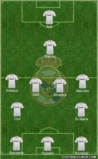 Higuain · Ronaldo · Benzema · Di Maria · Ozil · Khedira · Xabi · Marcelo · Arbeloa · Ramos · Iker