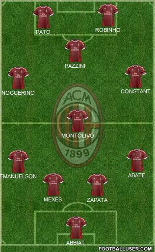 ABBIAT · ZAPATA · MEXES · EMANUELSON · ABATE · MONTOLIVO · NOCCERINO · CONSTANT · PAZZINI · PATO · ROBINHO