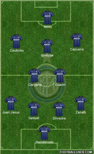 Handanovic · Silvestre · Samuel · Juan Jesus · Zanetti · Gargano · Guarin · Sneijder · Coutinho · Cassano · Milito