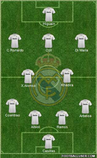 Casillas · Albiol · Ramos · Arbeloa · Coentrao · X.Alonso · Khedira · C.Ronaldo · Ozil · Di Maria · Higuain