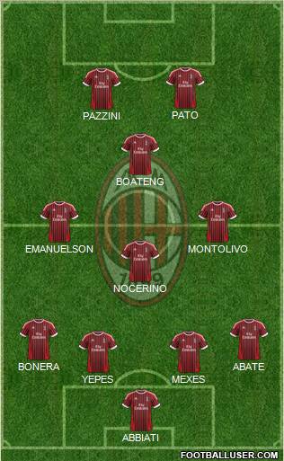 ABBIATI · YEPES · MEXES · BONERA · ABATE · NOCERINO · EMANUELSON · MONTOLIVO · BOATENG · PAZZINI · PATO