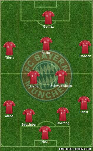 Neur · Badstuber · Boateng · Alaba · Lahm · Shaqiri · Schwainsteiger · Ribery · Robben · Muller · Gomez