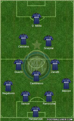 Handanovic · Samuel · Ranocchia · Nagatomo · Maicon · Cambiasso · Guarín · Zanetti · Sneijder · Cassano · D. Milito