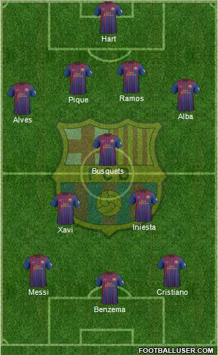 Benzema · Messi · Cristiano · Xavi · Iniesta · Busquets · Alves · Alba · Pique · Ramos · Hart