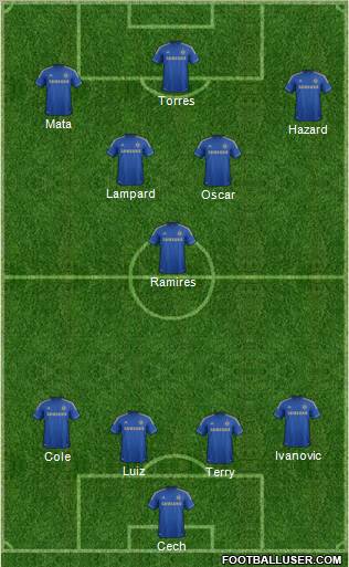 Cech · Terry · Luiz · Cole · Ivanovic · Ramires · Oscar · Lampard · Hazard · Mata · Torres