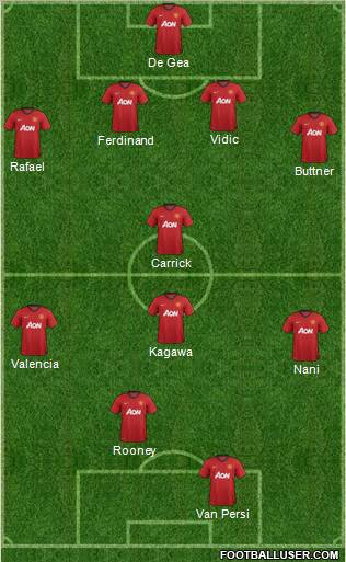 Van Persi · Rooney · Nani · Valencia · Kagawa · Carrick · Buttner · Rafael · Ferdinand · Vidic · De Gea