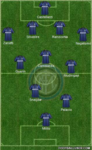 Castellazzi · Silvestre · Ranocchia · Zanetti · Nagatomo · Cambiasso · Guarin · Mudingayi · Sneijder · Palacio · Milito