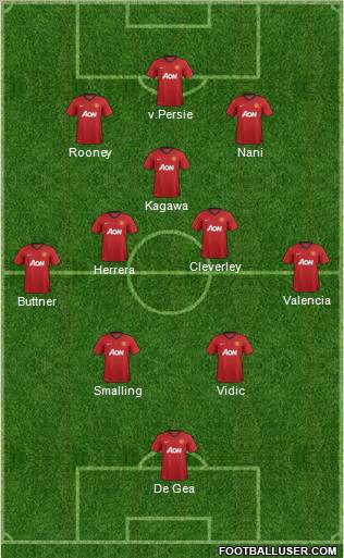 De Gea · Smalling · Vidic · Buttner · Valencia · Herrera · Cleverley · Kagawa · Rooney · Nani · v.Persie