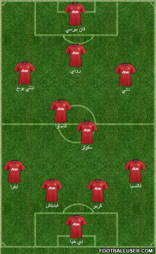 دي خيا · الريو · فيديتش · ايفرا · فالنسيا · سكولز · كاجاوا · ناني · اشلي يونغ · روني · فان بيرسي