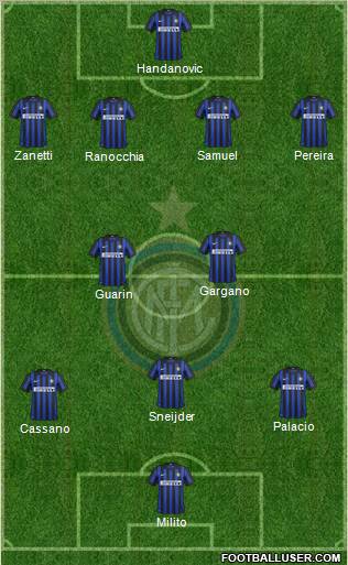 Handanovic · Zanetti · Samuel · Pereira · Ranocchia · Gargano · Guarin · Sneijder · Palacio · Cassano · Milito