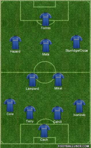 Cech · Cahill · Terry · Ivanovic · Cole · Lampard · Mikel · Mata · Hazard · Sturridge/Oscar · Torres