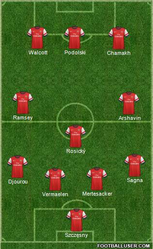 Szczęsny · Vermaelen · Mertesacker · Djourou · Sagna · Rosický · Arshavin · Ramsey · Chamakh · Walcott · Podolski