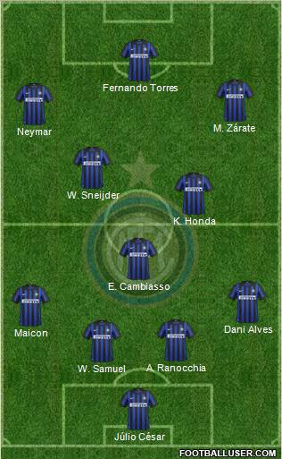 Júlio César · W. Samuel · A. Ranocchia · Maicon · Dani Alves · E. Cambiasso · K. Honda · W. Sneijder · Neymar · M. Zárate · Fernando Torres