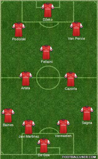 De Gea · Javi Martinez · Vermaelen · Baines · Sagna · Cazorla · Arteta · Fellaini · Podolski · Van Persie · Džeko