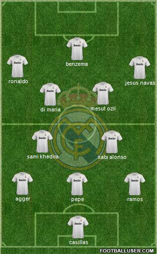 casillas · pepe · ramos · agger · xabi alonso · sami khedira · di maria · mesut ozil · jesus navas · ronaldo · benzema