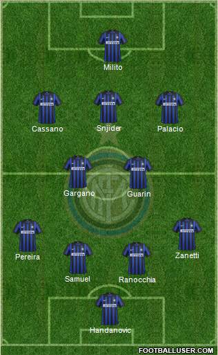 Handanovic · Ranocchia · Samuel · Pereira · Zanetti · Guarin · Gargano · Cassano · Palacio · Snjider · Milito