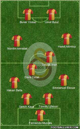 Fernando Muslera · Semih Kaya · Tomas Ujfalusi · Hakan Balta · Emmanuel Eboue · Emre Colak · Selcuk Inan · Nordin Amrabat · Hamit Altintop · Burak Yilmaz · Umut Bulut