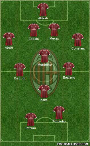 Abbiati · Mexes · Zapata · Abate · Constant · Montolivo · Boateng · De Jong · Kaka · Robinho · Pazzini