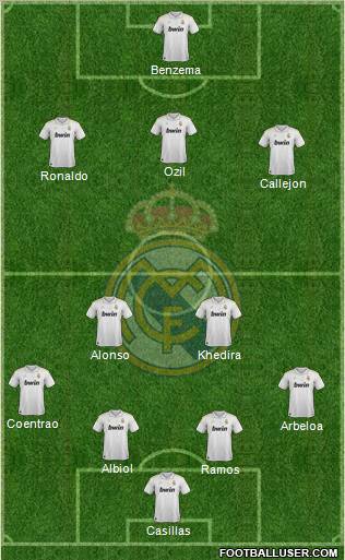 Casillas · Ramos · Albiol · Arbeloa · Coentrao · Alonso · Khedira · Callejon · Ronaldo · Ozil · Benzema