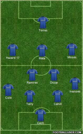 Cech · Terry · Cahill · Cole · Ivanovic · Ramires · Oscar · Mata · Hazard 17 · Moses · Torres
